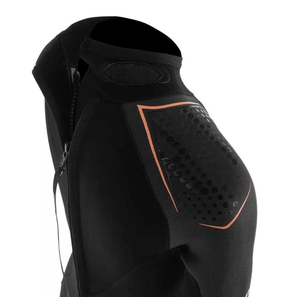 Víz alatti mozgásszabadság: Elaskin X.6.2 rugalmas neoprénből és Elaskin X.6.4 (puhább) anyagból készült a hónalj alatt, így nagyfokú mozgásszabadságot biztosít a búvároknak. Cipzármentes gallér, speciális kivágással a kényelem maximalizálása érdekében. Az Optima gallér nagy mozgásszabadságot biztosít, ami elengedhetetlen azoknak a búvároknak, akiknek gyakran le kell hajolniuk vagy el kell fordítaniuk a fejüket, hogy megfigyeljék a víz alatti környezetet. A gallérnál lévő cipzár hiánya segít elkerülni a vízbejutási pontokat is.