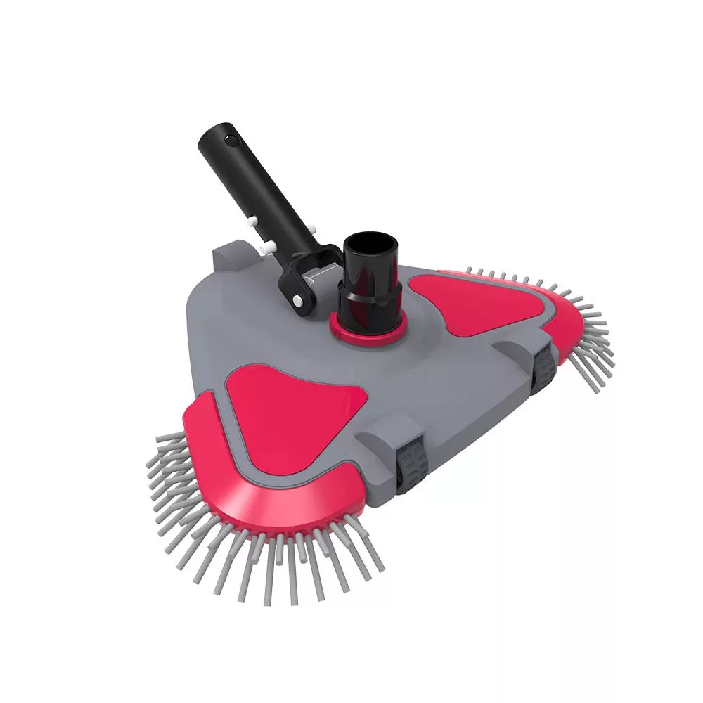 • Súlyozott háromszög alakú oldalékefés porszívófej görgőkkel: Stabil kialakításának köszönhetően lehetővé teszi a medence aljának és a nehezen elérhető sarkainak alapos tisztítását. Az alján található 8 db kefe lehetővé teszi a szennyeződések, algák és üledék alapos eltávolítását a medence aljáról. 32/38 mm-es tömlőcsatlakozással.