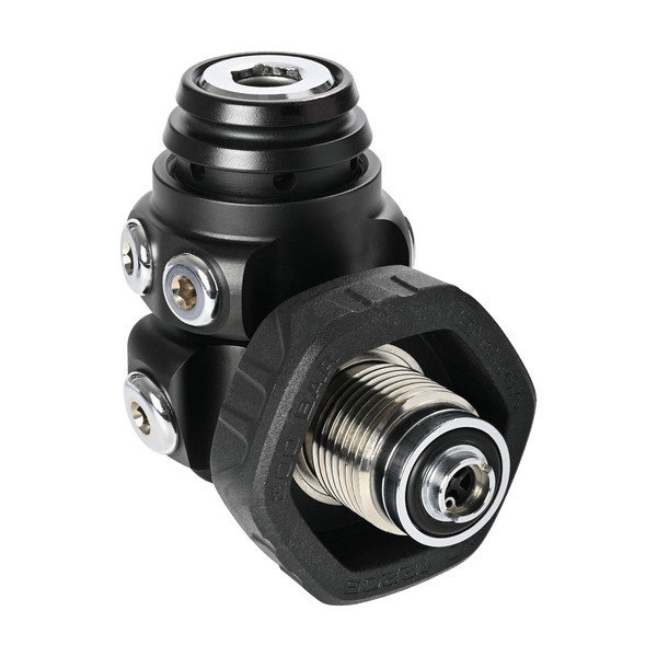 The first stage is coated in Mares' exclusive “Black Intense” finish, a ceramic-based