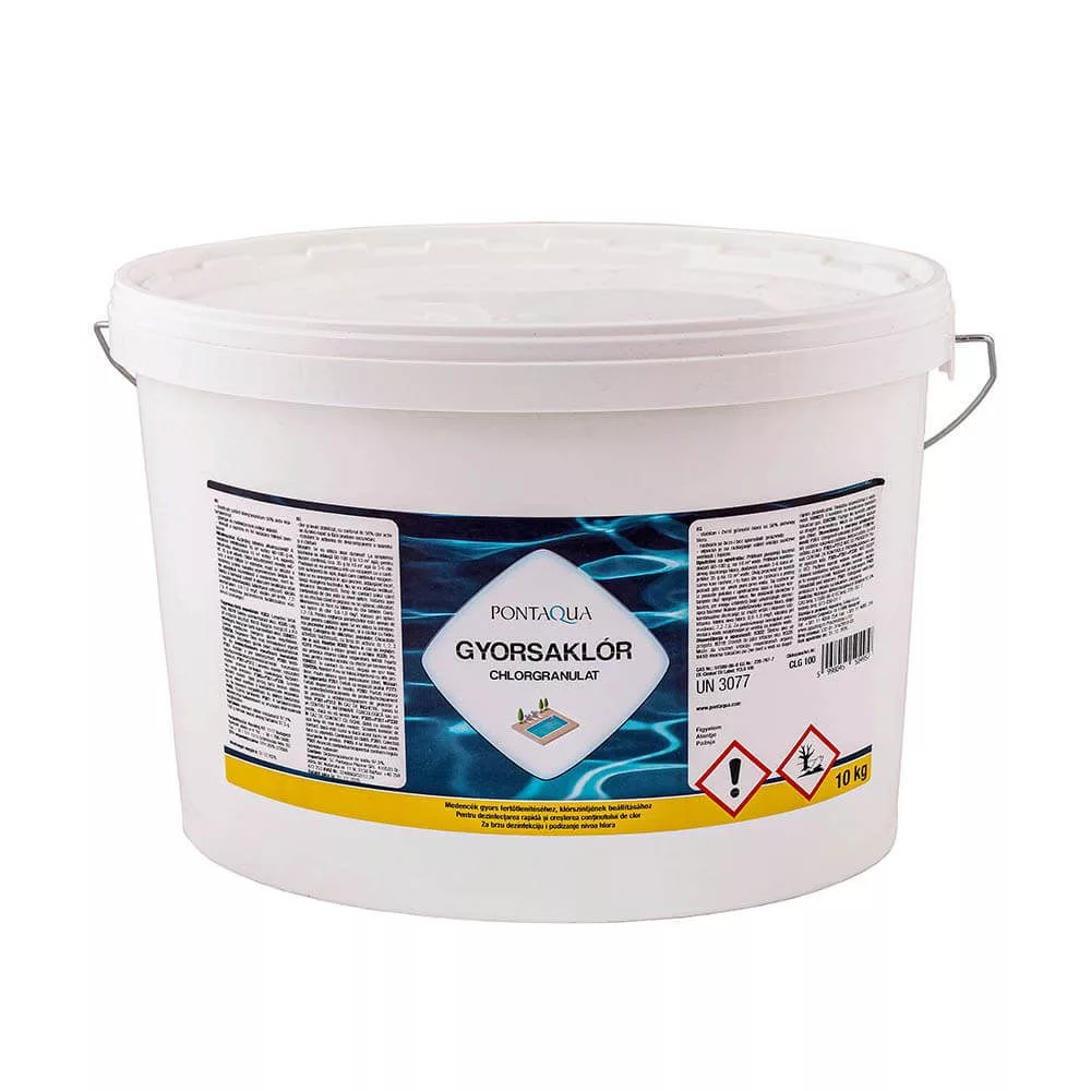 Application: Can only be used undiluted! When filling the pool, 60-100 g per 10 m3 of water, for continuous chlorination, approx. 3-6 days per 10 m3 of water. Add 35 g. When preparing a solution, always fill the container with water first, and then pour the solution evenly along the edge of the pool. Do not add it directly to the pool, because it fades the color of the cover! After the chlorine level has been adjusted, additional chlorine dosing with tablets is advisable. Ideal chlorine content: 0.6-1.0 mg/l, ideal pH value: 7.2-7.6. A water analyzer is required to set the water chemistry parameters!