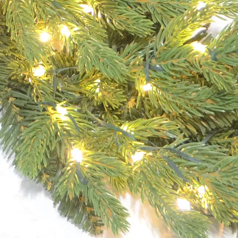 Christmas garland together with string of lights, which can be used to quickly create a spectacular decoration at home, office or cafe. It has a pleasant warm white light, and due to its flexible wire structure, it can be easily attached and bent to shape.