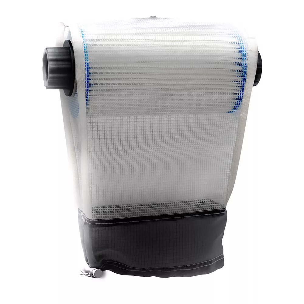 Extra wide head, removable, flexible side wings, under which wheels are placed for easier mobility. The wings can be removed for easier access to the corners. The brush at the bottom of the head helps to loosen the dirt settled on the bottom of the pool. Its extra large filter capacity can settle 6.5 l of dirt. It can operate for 75 minutes with the built-in lithium-ion battery. We get two types of filter bags, one with a coarser and one with a finer weave, for efficient cleaning of larger and smaller dirt. It can be attached to the standard telescopic pole with a metal connection.